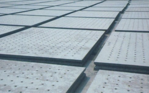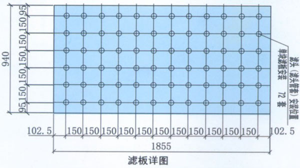 濾板采用鋼模澆筑,混凝土和水泥、砂石、水份嚴格配方,攪拌、保養(yǎng)的工藝過程。坍塌度的控制等部嚴格按國家相關(guān)標準規(guī)范操作。雙層鋼筋必須根據(jù)濾板的支撐點和受力方向進行不同的設(shè)計,確;炷姸鹊燃壓蜑V板質(zhì)量符合要求。