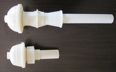 曝氣生物濾池專用防堵塞長柄濾頭,由濾桿、濾水帽、強性套管組成,濾桿套管預(yù)埋于混凝工濾扳中,并帶有內(nèi)絲螺紋,常規(guī)濾板厚度=100mm。長柄濾頭采用ABS工程塑料注塑而成,承壓強度高,踩碰不碎,連接牢固,安裝好后可保證濾頭不脫落。長柄濾頭設(shè)雙向防堵下端設(shè)有濾罩有效防止雜物進入濾桿,下濾帽外附著的雜質(zhì)可通過下降水位采清除,必要時可更換長柄濾頭與濾板間無死水區(qū),不堵塞積泥。